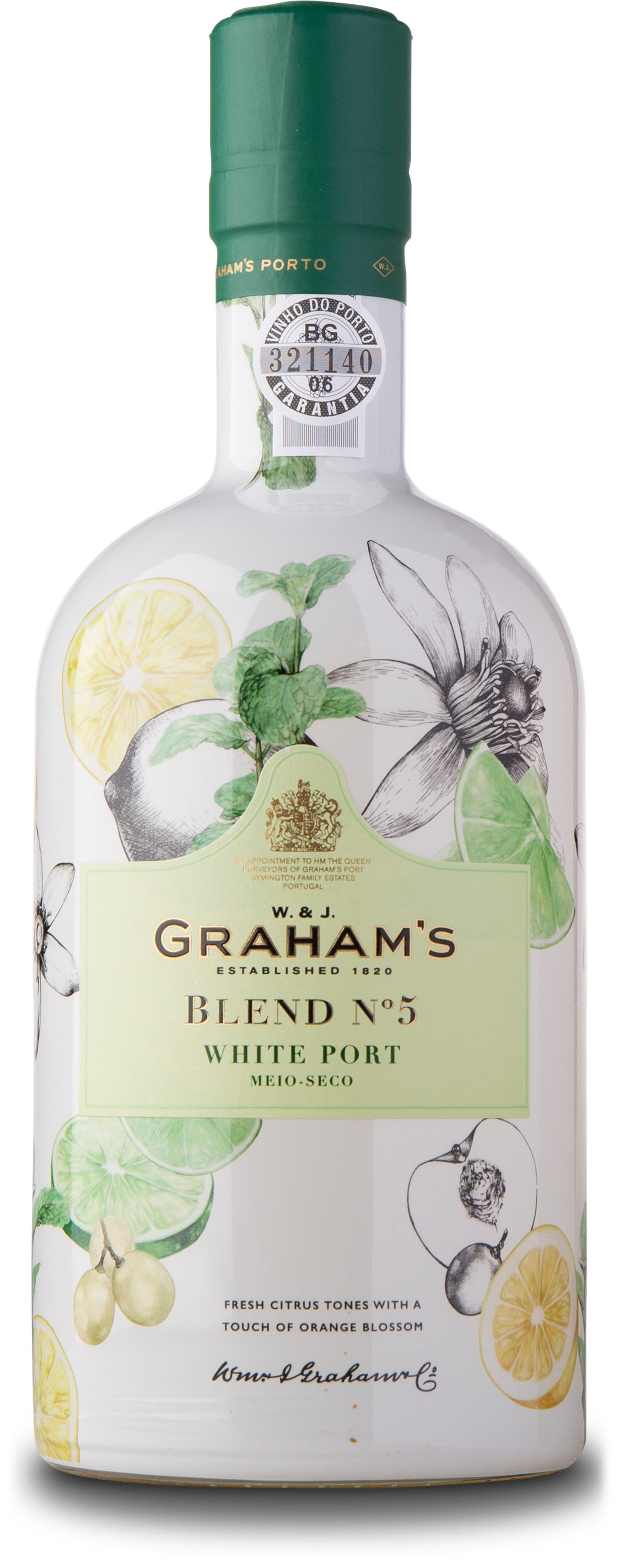 Head Winemaker Charles Symington har valgt to hvide, portugisiske druer til Graham's Blend No. 5: Den friske Malvasia Fina og den aromatiske Moscatel Gallego. Og sådan er portvinen blevet - frisk og aromatisk, med lidt sødme og blomster i udtrykket. Den er mellemtør og designet, så den er oplagt i en Port Tonic, men kan naturligvis lige så godt stå på egne fødder en sommerdag i Porto. Eller Glyngøre.