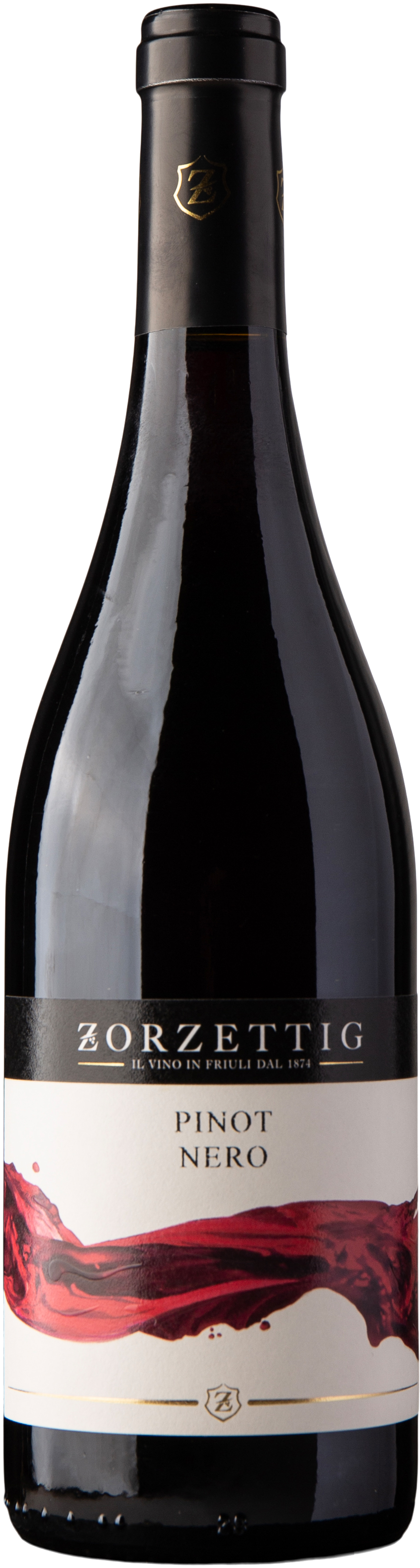 2023 Pinot Nero fra Zorzettig præsenterer en strålende rubinrød farve i glasset. Duften er elegant og lokkende med noter af røde kirsebær, vilde jordbær og et strejf af tørrede roser, som komplementeres af fine krydrede undertoner fra fadlagringen. Smagen er raffineret og silkeblød med en frisk syre, der balancerer de modne røde frugtnuancer. Afslutningen er lang og harmonisk med et hint af kakao og vanilje.