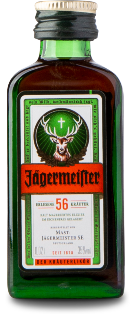 Jägermeister har været den samme siden 1878. Der bruges stadig samme 56 botanicals, og det ikoniske logo er stadig det samme. Den er sødmefuld, bitter og med frugtige præg af citrus, krydderier og en lang række urter. Opskriften er hemmelig.
