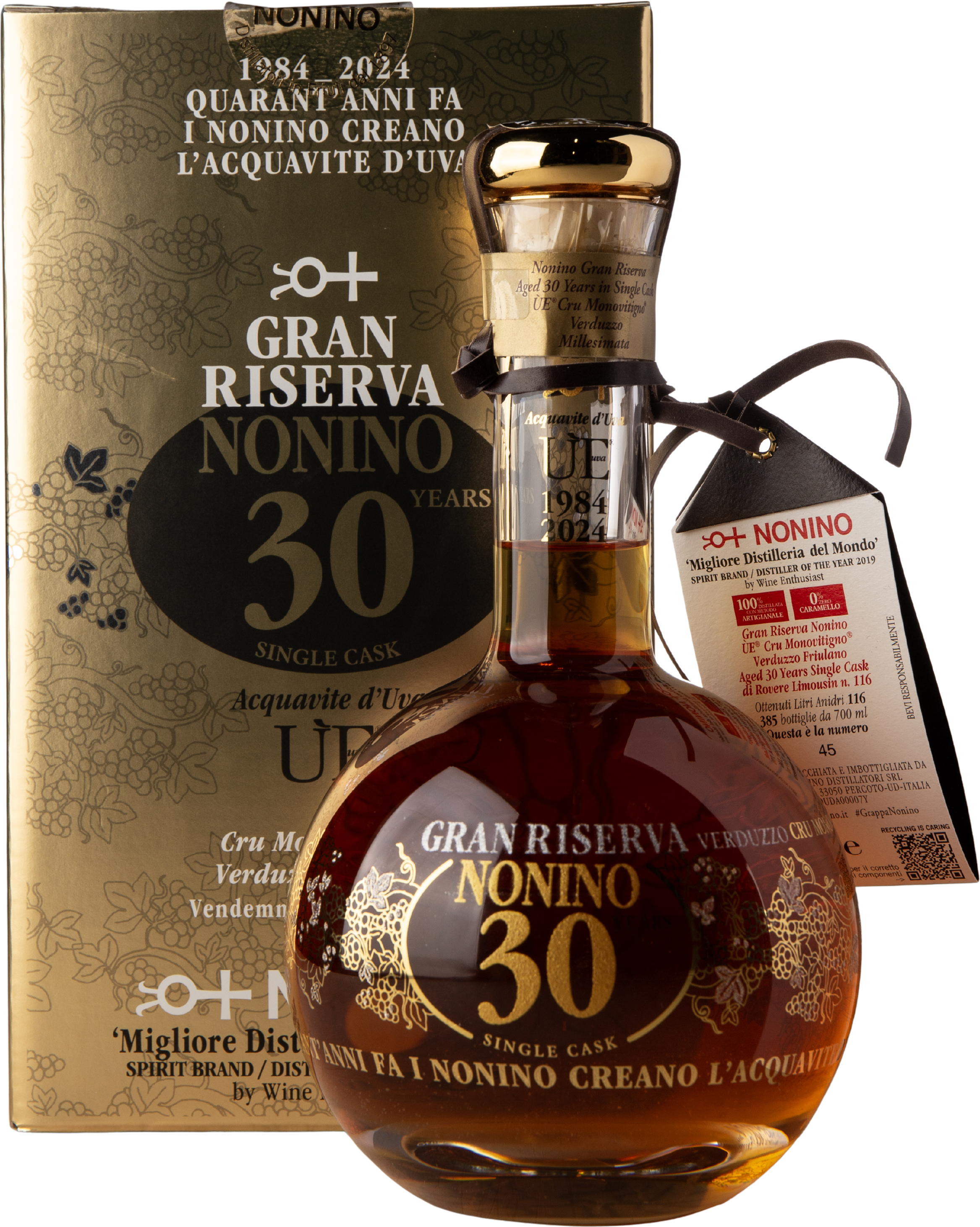 Grappa Acquavite d´uva Ue cru Verduzzo Riserva 30 år 43%, 70 cl
