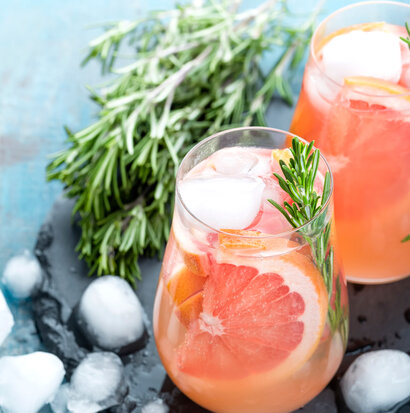 New Age Rosé + skiver af grapefrugt. Tilsæt is og et skvæt dansk vand eller tonic.