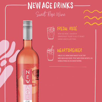 Sødmefulde, boblende vine med et legende ungdommeligt udtryk. Et helt originalt take på selve det at nyde vin – på stranden, på terrassen eller til fest med vennerne. Friske, lette, energiske og let drikkelige vine. New Age opfordrer til at tænke ud af boksen og skabe uendelige muligheder og et ekstra plus er, at de kan blandes og mixes i drinks.